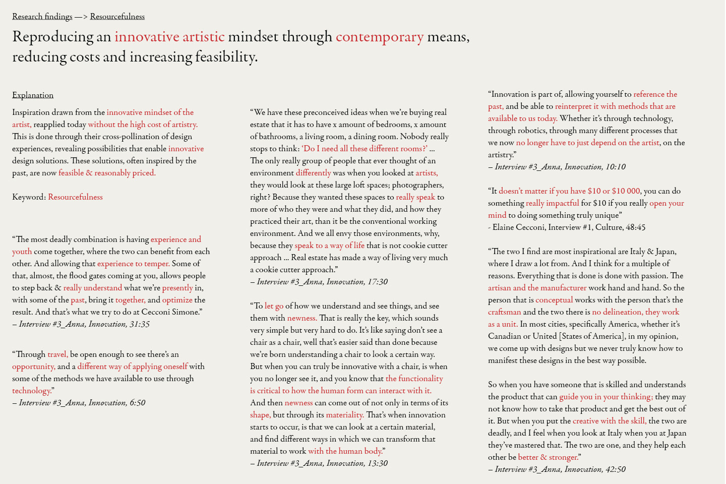 Researched Cecconi Simone through public online sources and private interviews with the founders, then synthesized the findings into four core values to form the foundation for the brand’s revitalization and manifesto.